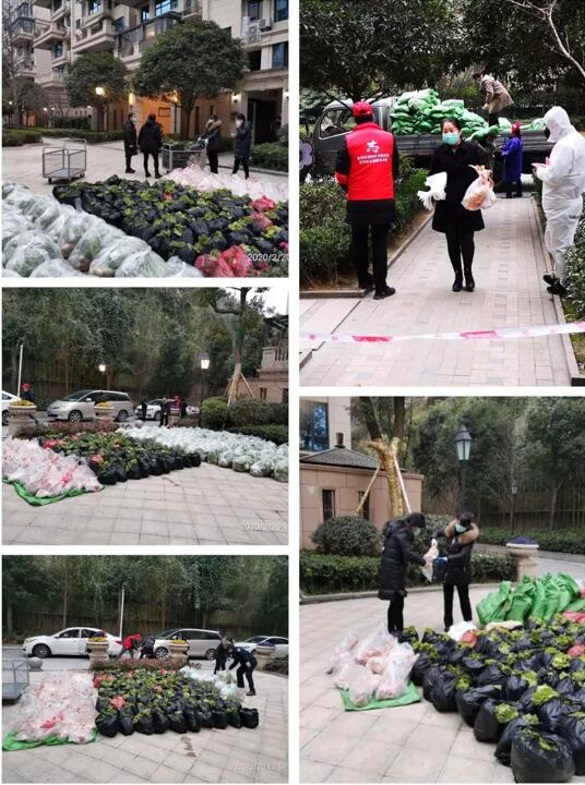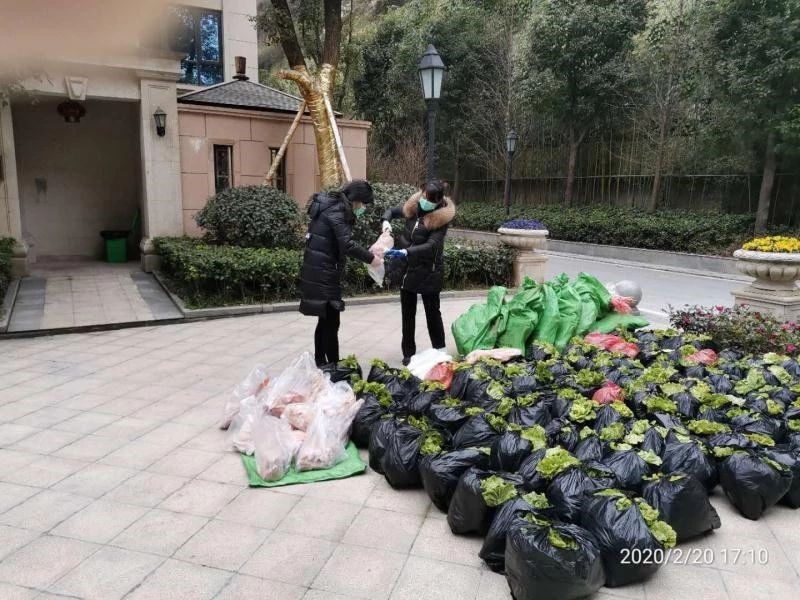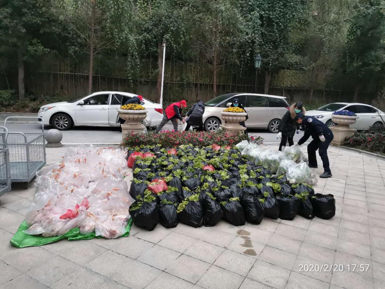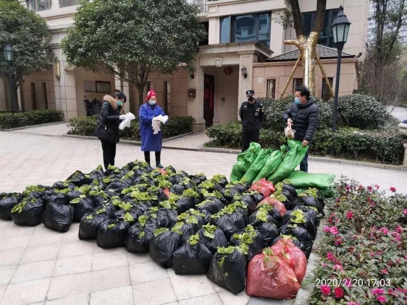 2月20日下午17:00,各類新鮮蔬菜、鮮活禽類的配送車開始到達(dá)各個小區(qū),全體工作人員開始分樓棟、分單元、分類進(jìn)行籌備。