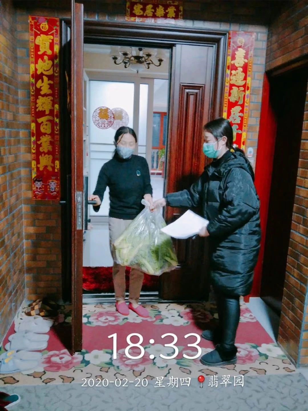 所有物資到戶后工作人員及志愿者會通過樓棟管家微信及敲門通知,業(yè)主收到微信通知并開門的情況下,由工作人員將蔬菜禮包轉(zhuǎn)交給業(yè)主,為避免交叉感染,要求所有工作人員務(wù)必做好全面防護(hù)措施,特殊時期,嚴(yán)禁和業(yè)主寒暄交談。
