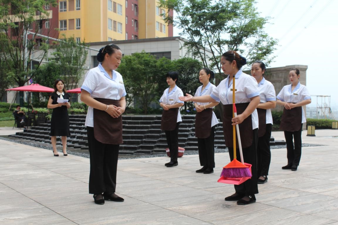 環(huán)境服務(wù)競(jìng)賽分為單元大廳和室外地面清潔兩大環(huán)節(jié)。保潔員個(gè)個(gè)熱情高漲,精神飽滿,全力以赴,在力爭(zhēng)第一不服輸?shù)哪繕?biāo)指引下,全身心投入比賽。結(jié)束后,裁判員從精神面貌、保潔工具、服務(wù)禮儀、保潔效果等方面進(jìn)行綜合考評(píng)打分。
