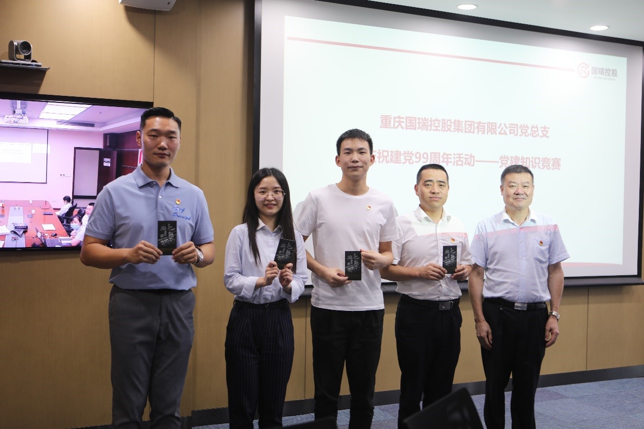 在我們偉大的中國共產(chǎn)黨的生日當(dāng)天,為隆重慶祝這一重要節(jié)日,加強(qiáng)黨員的黨性鍛煉,重慶國瑞控股集團(tuán)黨總支在重慶國瑞中心23會議室、十堰公司20樓會議室同時舉行了以“慶祝中國共產(chǎn)黨成立99周年”為主題的黨日活動?;顒佑牲h總支副書記肖基鑾同志主持,各支部的正式黨員、預(yù)備黨員、入黨積極分子參加了本次活動。