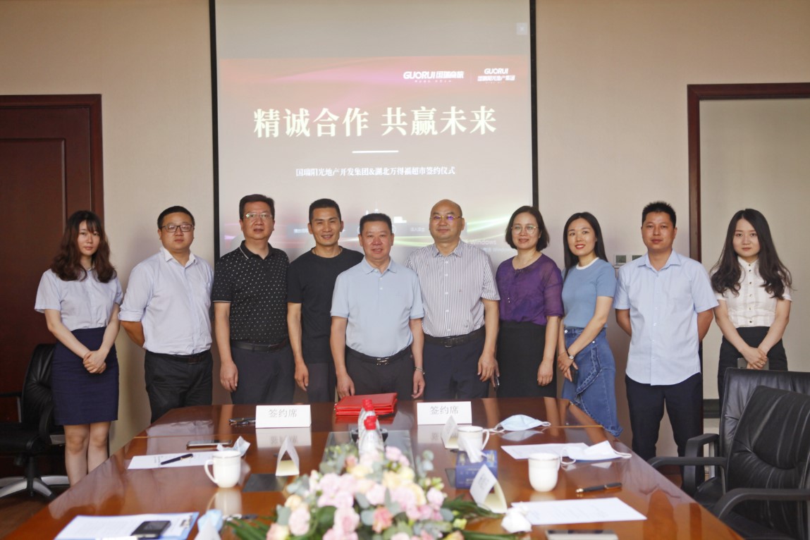 7月8日上午8點(diǎn)58分,國(guó)瑞陽(yáng)光地產(chǎn)開(kāi)發(fā)集團(tuán)十堰有限公司與湖北萬(wàn)得福連鎖超市管理有限公司簽約儀式在公司20樓會(huì)議室舉行,國(guó)瑞控股集團(tuán)副總裁肖基奎與萬(wàn)得福連鎖超市董事長(zhǎng)楊旭日共同在合約文本上簽字,標(biāo)志著萬(wàn)得福將正式入駐國(guó)瑞文旅城國(guó)瑞壹街。國(guó)瑞商旅集團(tuán)十堰公司的相關(guān)領(lǐng)導(dǎo)和萬(wàn)得福超市的相關(guān)負(fù)責(zé)同志參加了簽約儀式。